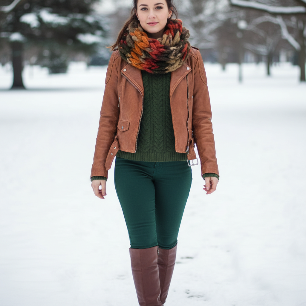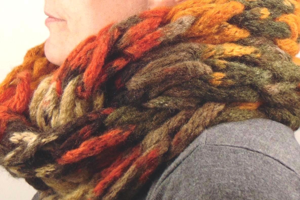 Ръчно плетен шал - инфинити- тютюнево-зелено-оранжев